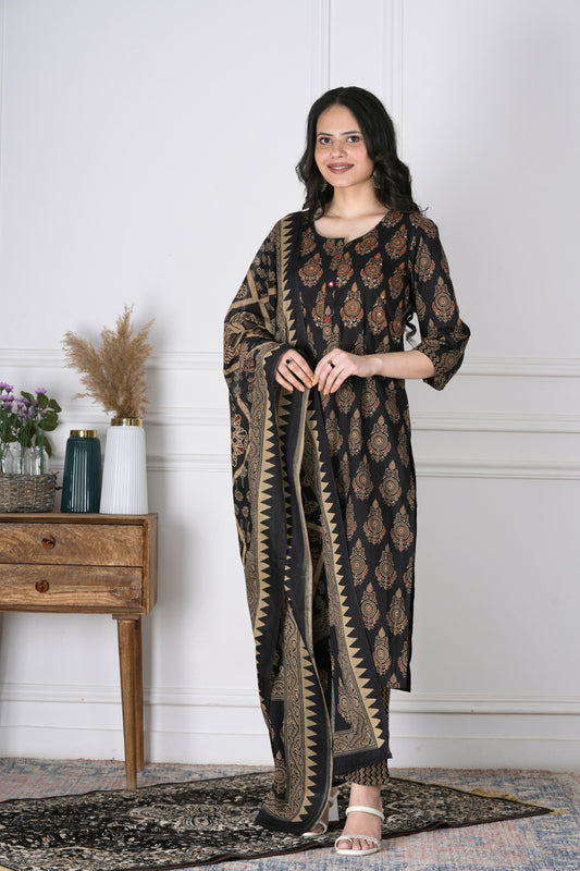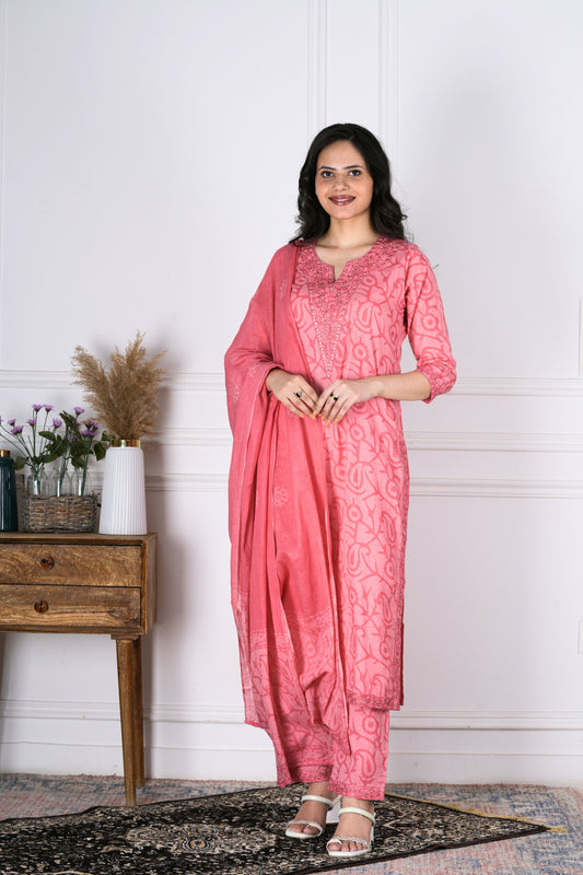Dhaarini Peachy Pink Batik Cotton Suit Set