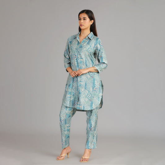 Powder Blue & Gold Muslin Co-ord Set – 2pc