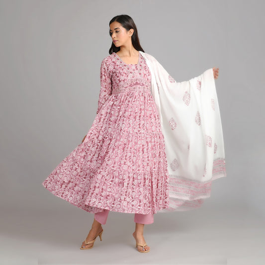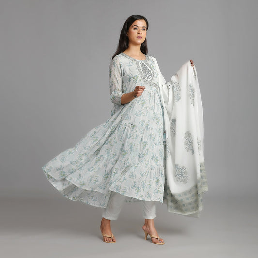 Nirjala Grey Cotton Anarkali Suit Set with Gotapatti Work– 3pc